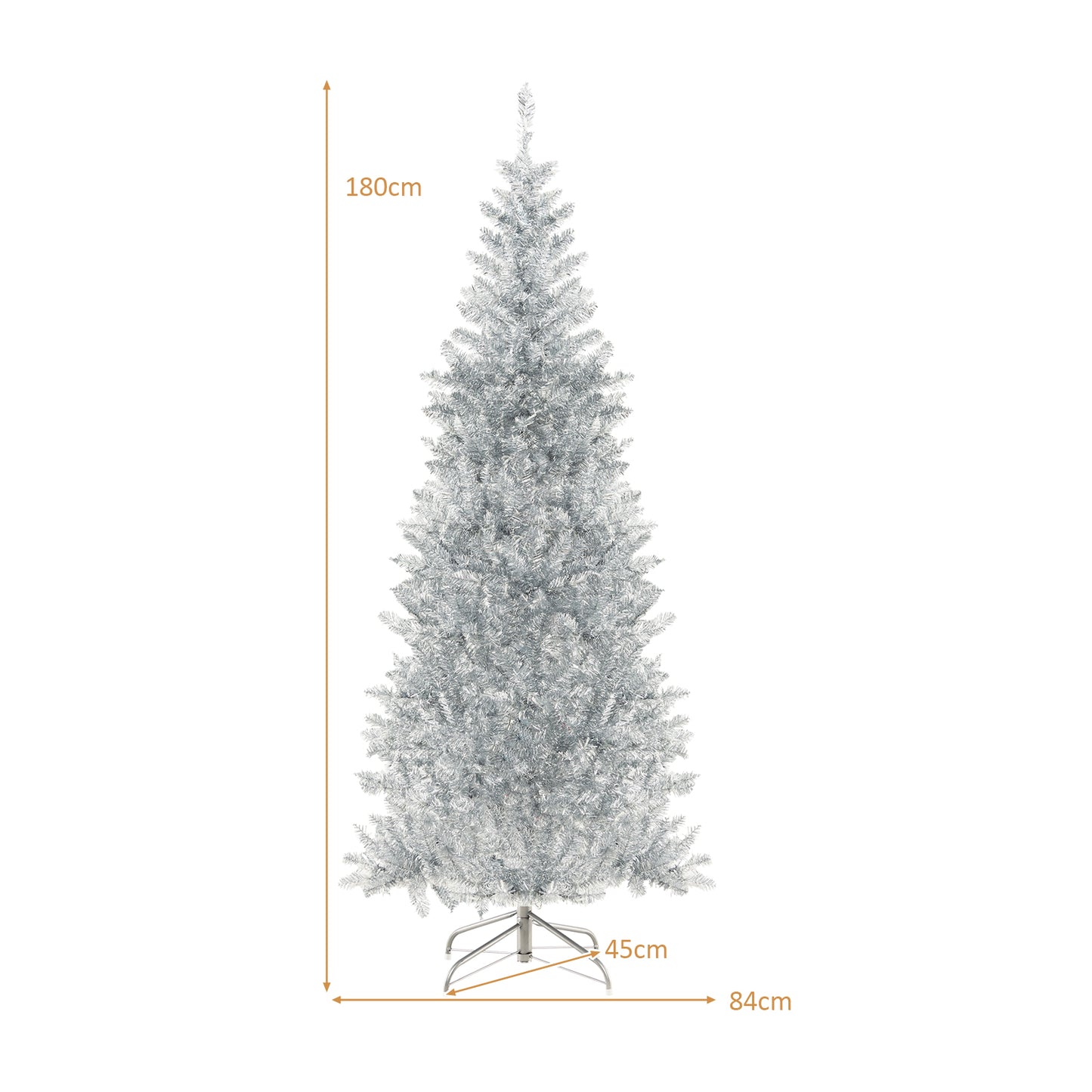 Sparkling Decoration: The 180cm Xmas tree boasts up to 790 vivid branch tips that are fully composed of silver tinsel films to add a touch of shimmer. Thus, the festive vibe at your party will become even more magical.