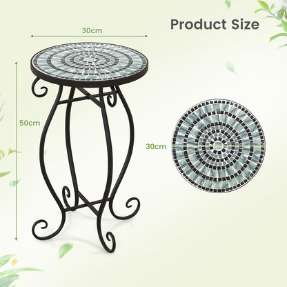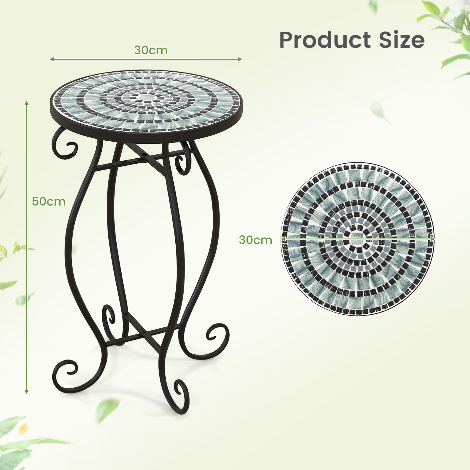 Accent table that brightens any space! With attractive tile tabletop and black metal frame, the outdoor side table can blend with any decorative theme. This patio mosaic end table is made of selected material for prolonged lifespan. The ceramic tile top is crack-resistant and easy-to-clean. Meanwhile, the powder-coated metal frame with black is rust-resistant and non-deformable. More importantly, it is more than a small coffee table, it is also a functional plant stand to display your potted plants. The compact and versatile design making it a stunning addition in many spaces, such as your garden, patio, yard, balcony, living room. In addition, it is easy to assemble within 3 steps.