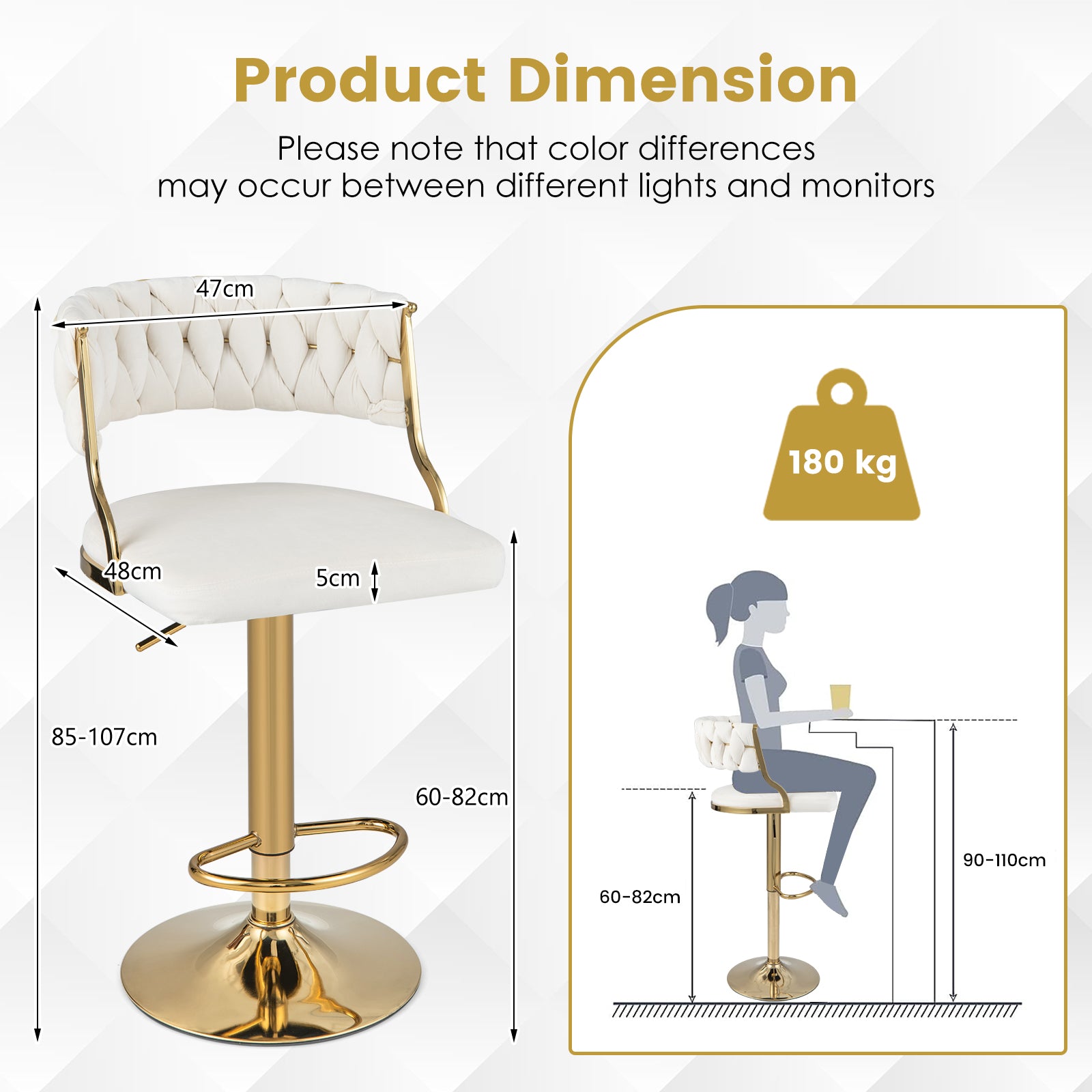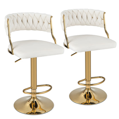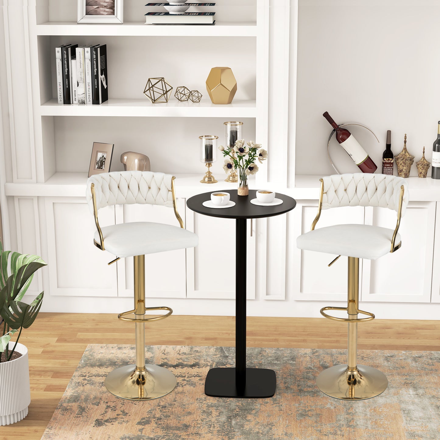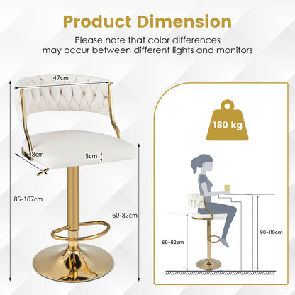 Upholstered Velvet Adjustable Bar Stools with Footrests for Kitchen Island-White