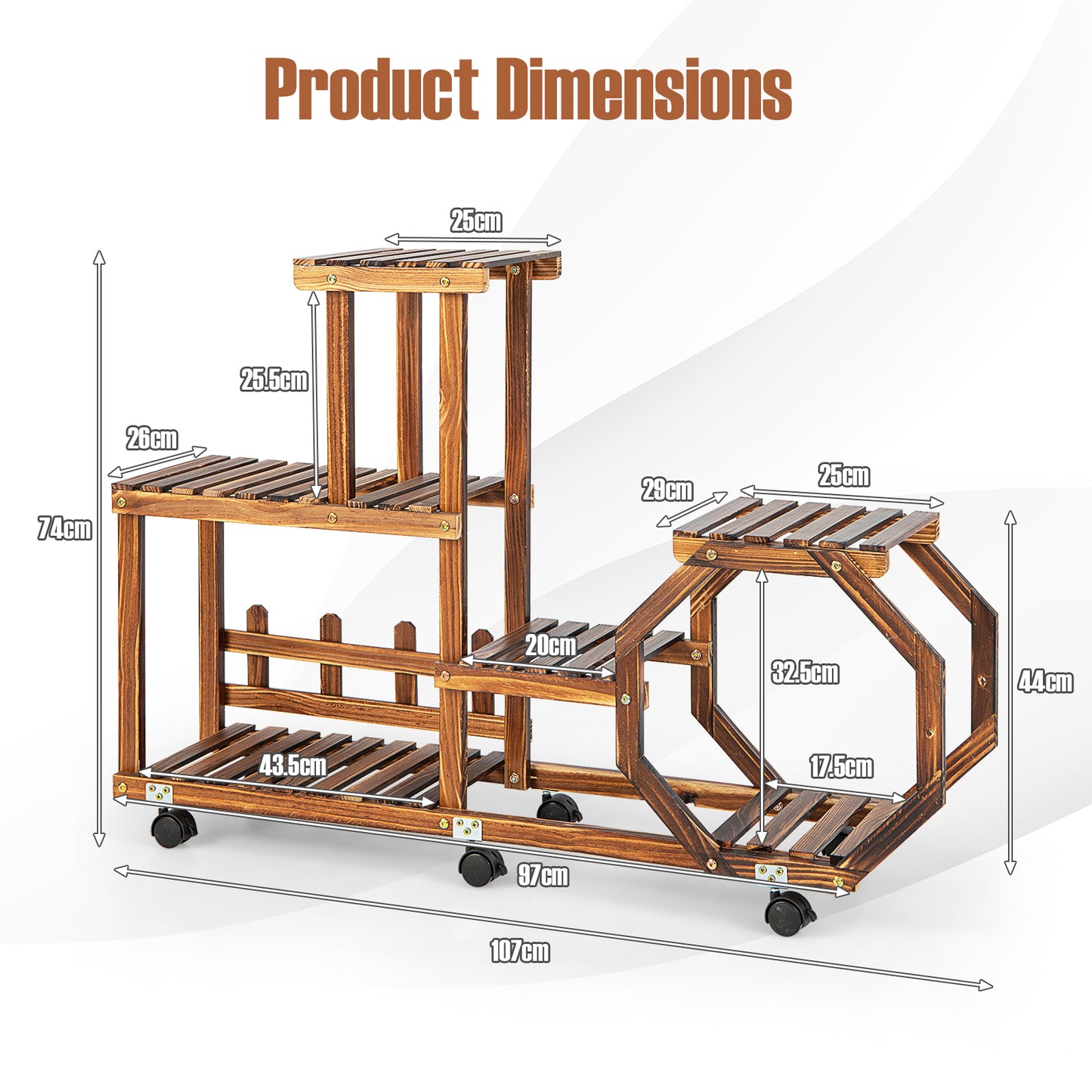 Easy Movement and Detachable Wheels: The rolling plant flower display shelf is equipped with 4/6/6 universal wheels, saving your effort in moving the plant stand from one room to another. And all wheels can be locked for keeping safe. You can also detach the wheels to use the shelf.