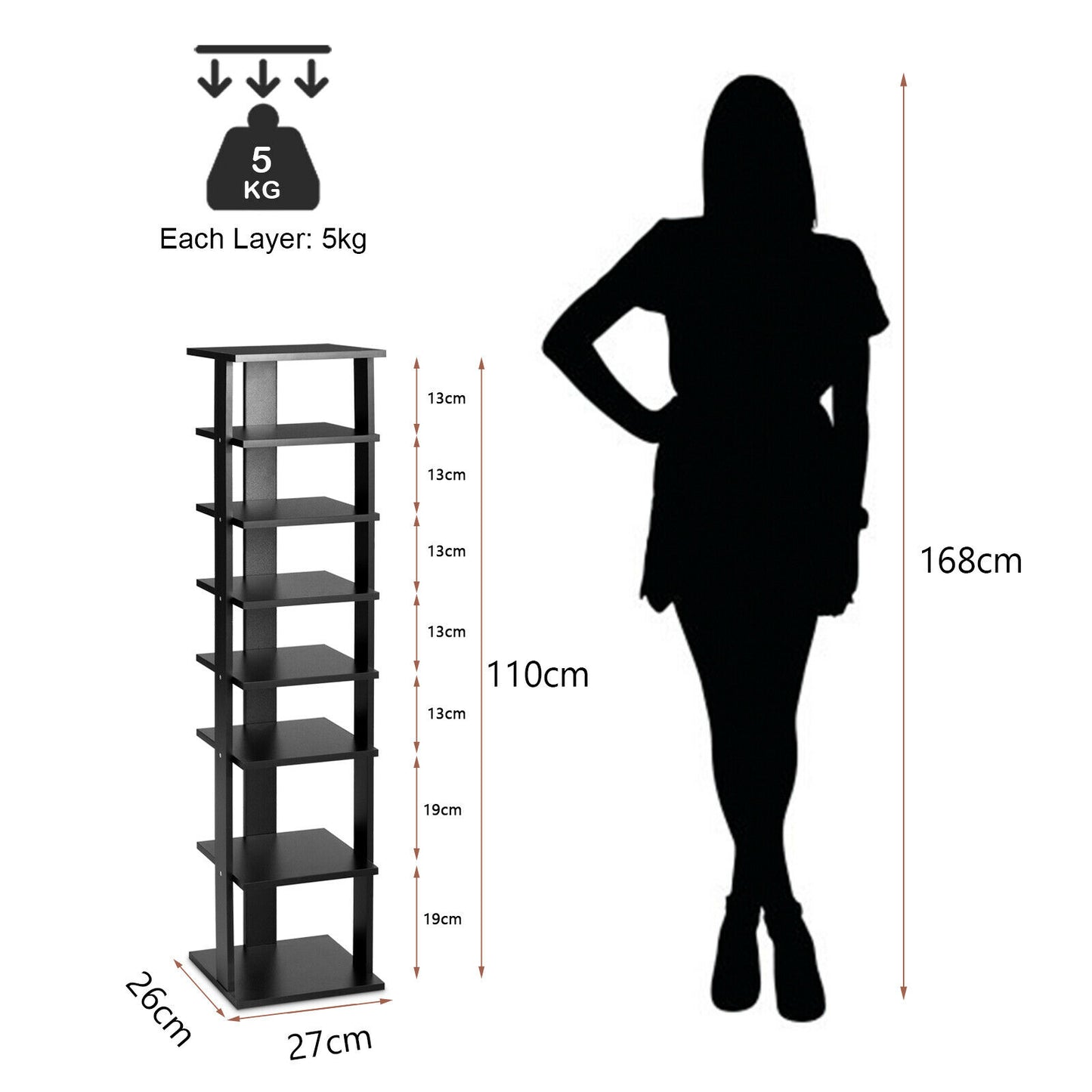 Wooden Vertical Shoe Rack with 7 Shelves-Black
